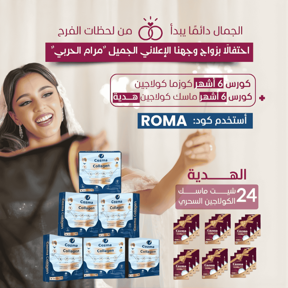 إحتفالًا بزواج وجهنا الإعلاني مرام الحربي 💍✨ خُذ كورس كوزما + كورس ماسك مطابق المدة مجّانًا 🎁 — كود الخصم: ROMA 🔥